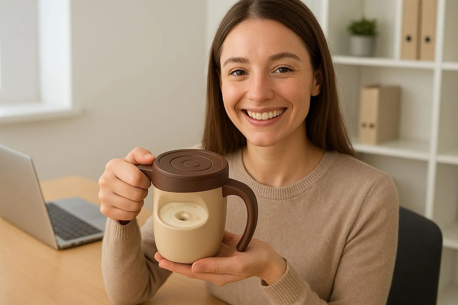 ? “¡Despídete de la cuchara! El jarro térmico que revuelve solo tu bebida favorita”